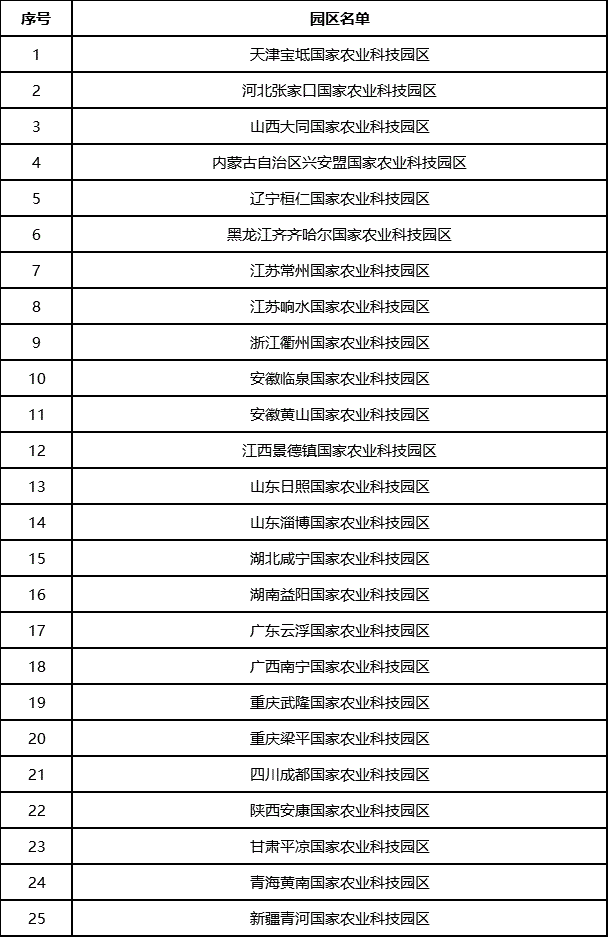 根据《国家农业科技园区管理办法》,科技部于2023年3至5月开展了有关国家农业科技园区(以下简称“园区”)验收工作。经视频答辩、现场考察、网上公示等环节,认定天津宝坻国家农业科技园区等第九批25个园区验收结果为“通过”(名单见附件)。