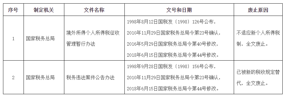 废止的税务部门规章目录