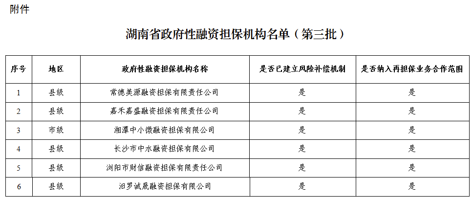 关于印发湖南省政府性融资担保机构名单(第三批)的通知