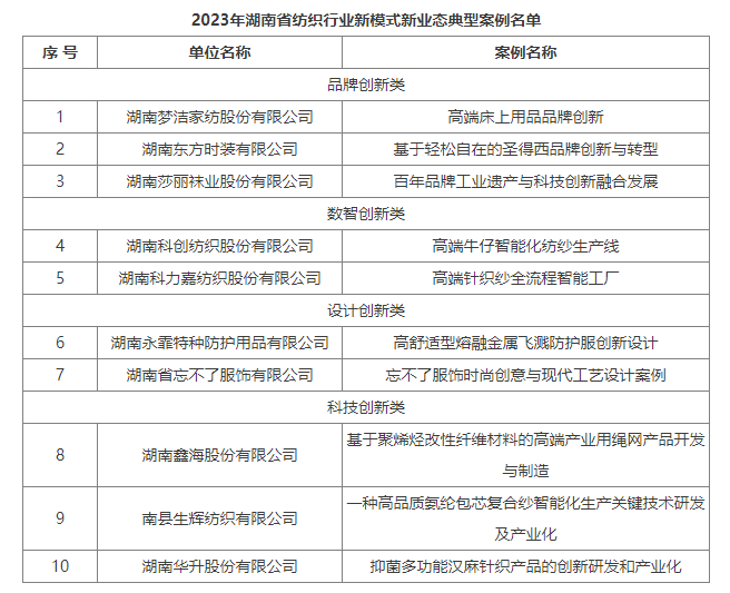 关于公布2023年湖南省纺织行业新模式新业态典型案例的通知