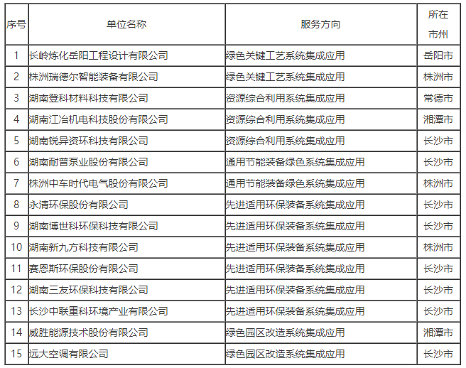 湖南省绿色制造系统解决方案供应商推荐目录(第二批)