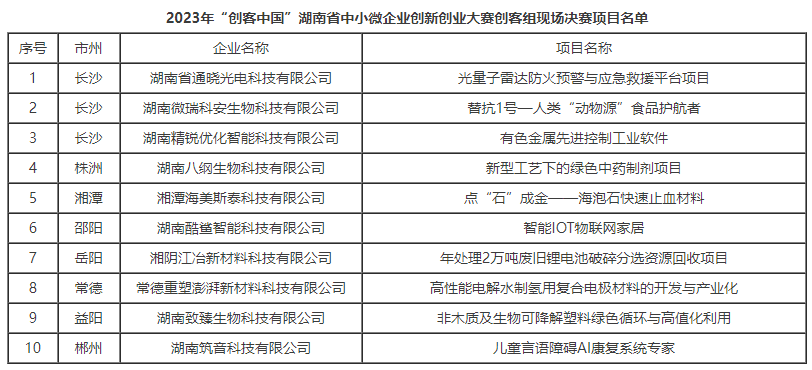 关于公布2023年“创客中国”湖南省中小微企业创新创业大赛现场决赛项目的通知