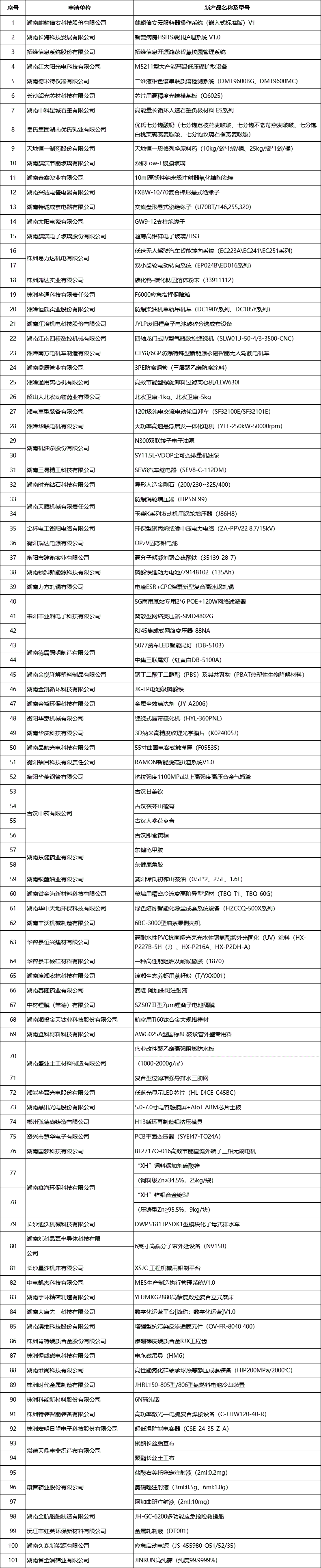 附件:2023年度“湖南省省级工业新产品(第一批)”名单
