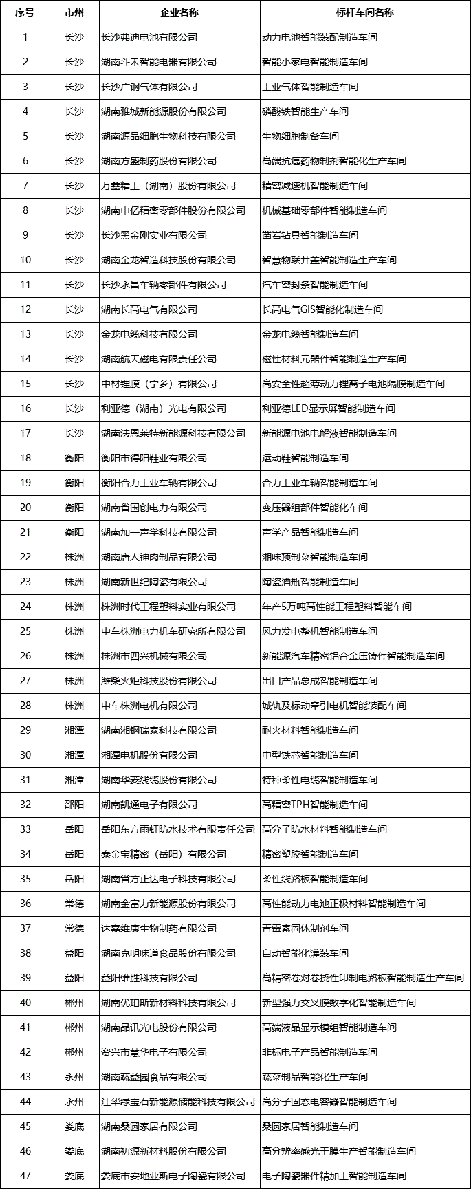 关于公布2023年度湖南省智能制造标杆企业和标杆车间的通知