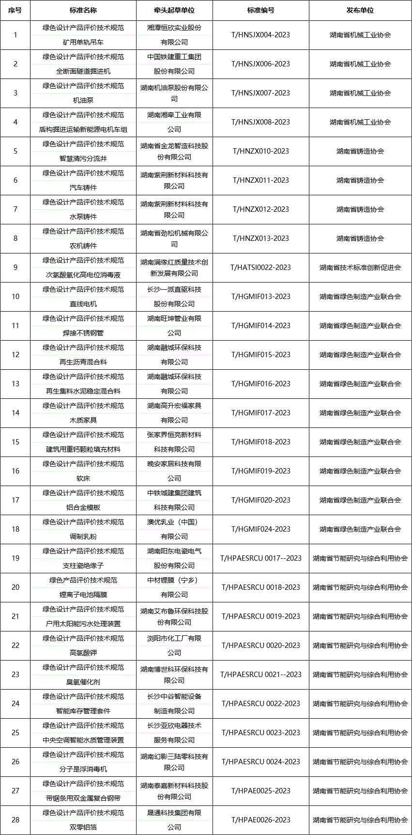 附件:湖南省绿色设计产品评价标准(第五批)清单