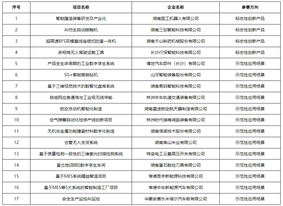 湖南省第五届“智赋万企”人工智能产业创新与应用大赛现场决赛项目名单