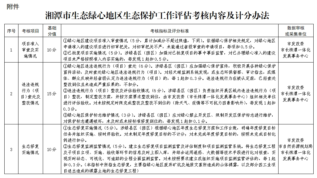附件:湘潭市生态绿心地区生态保护工作评估考核内容及计分办法