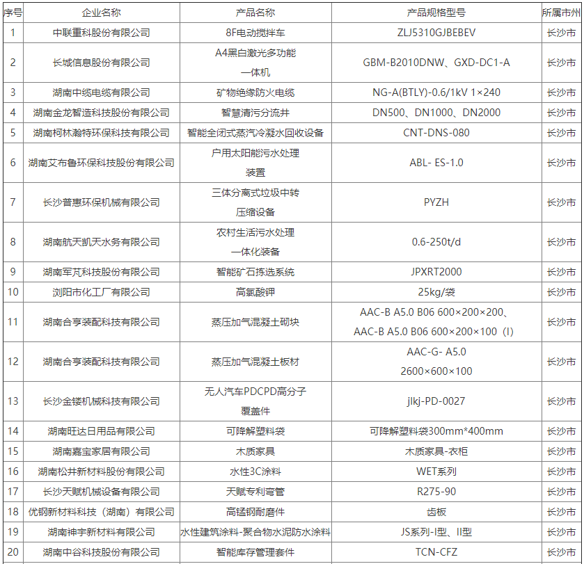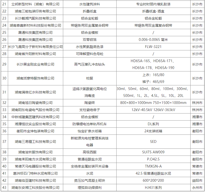湖南省绿色设计产品(第五批)名单