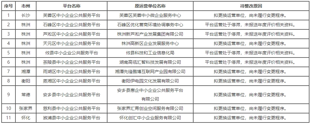 湖南省中小企业公共服务平台网络窗口服务平台运营单位名单