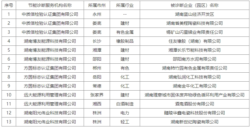 2024年湖南省工业节能诊断服务任务(省级)清单