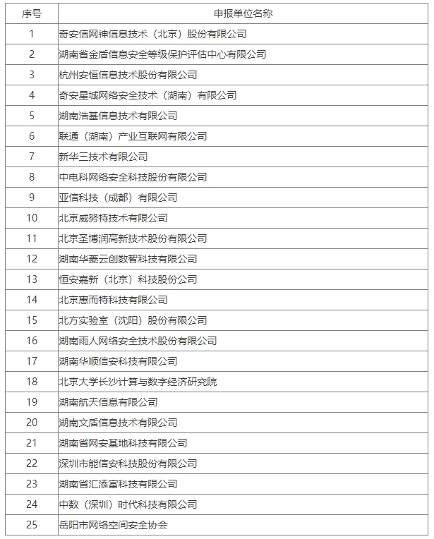 湖南省工业和信息化领域网络安全和数据安全管理支撑机构名单