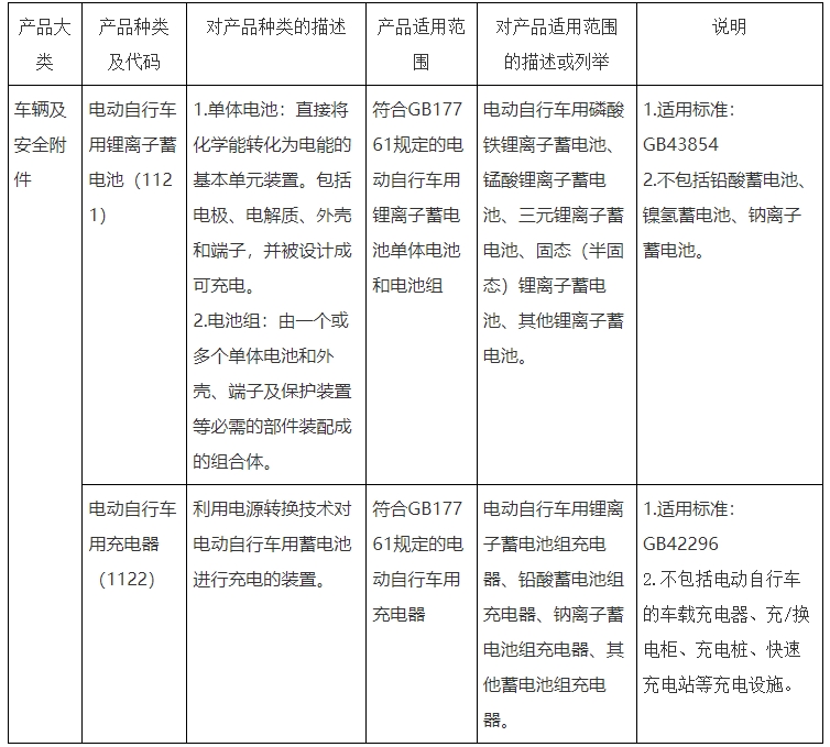 为进一步加强电动自行车质量安全监管,根据《中华人民共和国认证认可条例》有关规定,市场监管总局决定对电动自行车用锂离子蓄电池、电动自行车用充电器实施强制性产品认证(CCC认证)管理,现将有关要求公告如下: