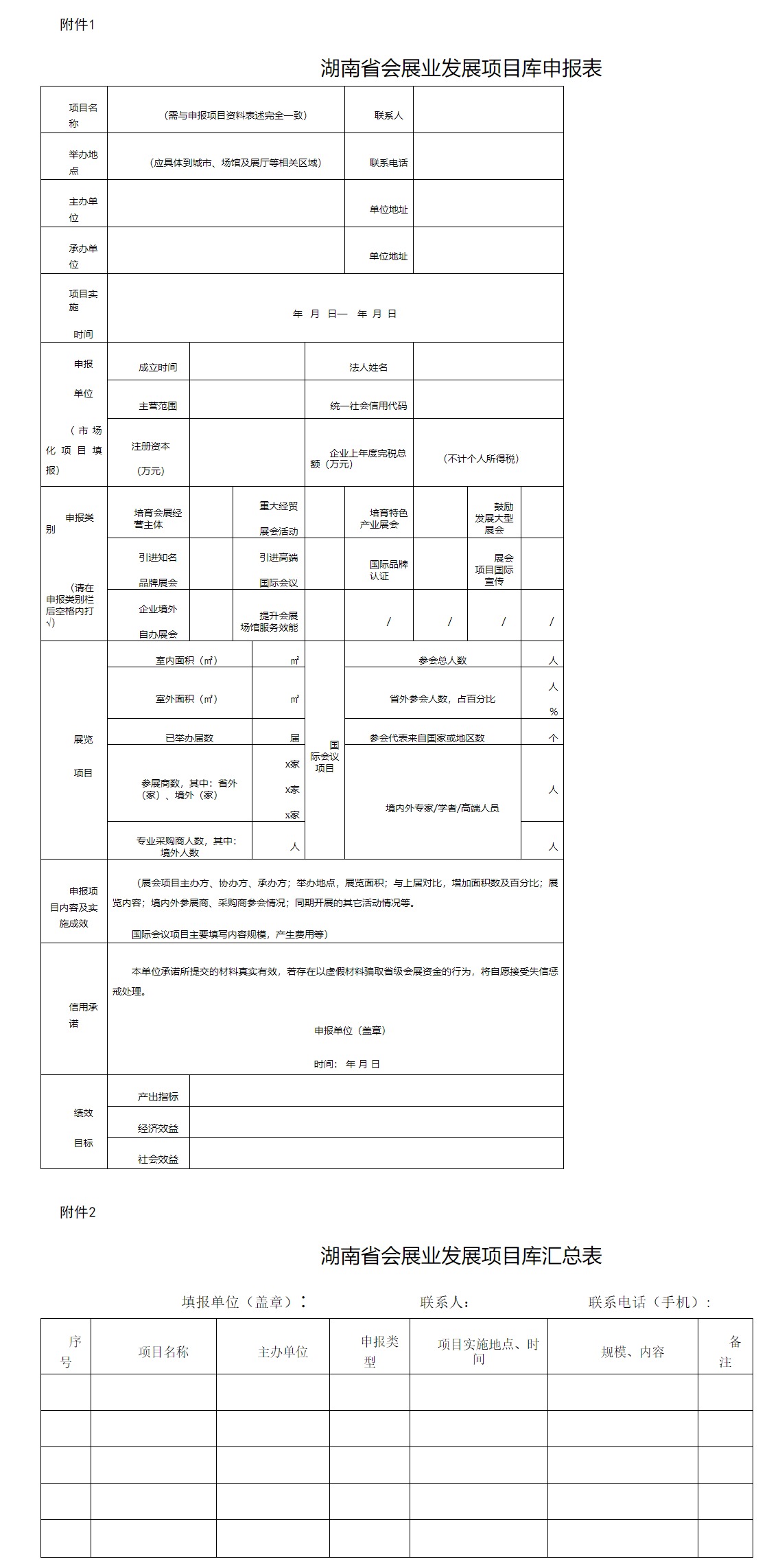 (一)项目单位申报。各单位负责通知并组织本辖区符合条件的企业进行申报,并按要求填写《湖南省会展业发展项目库申报表》。