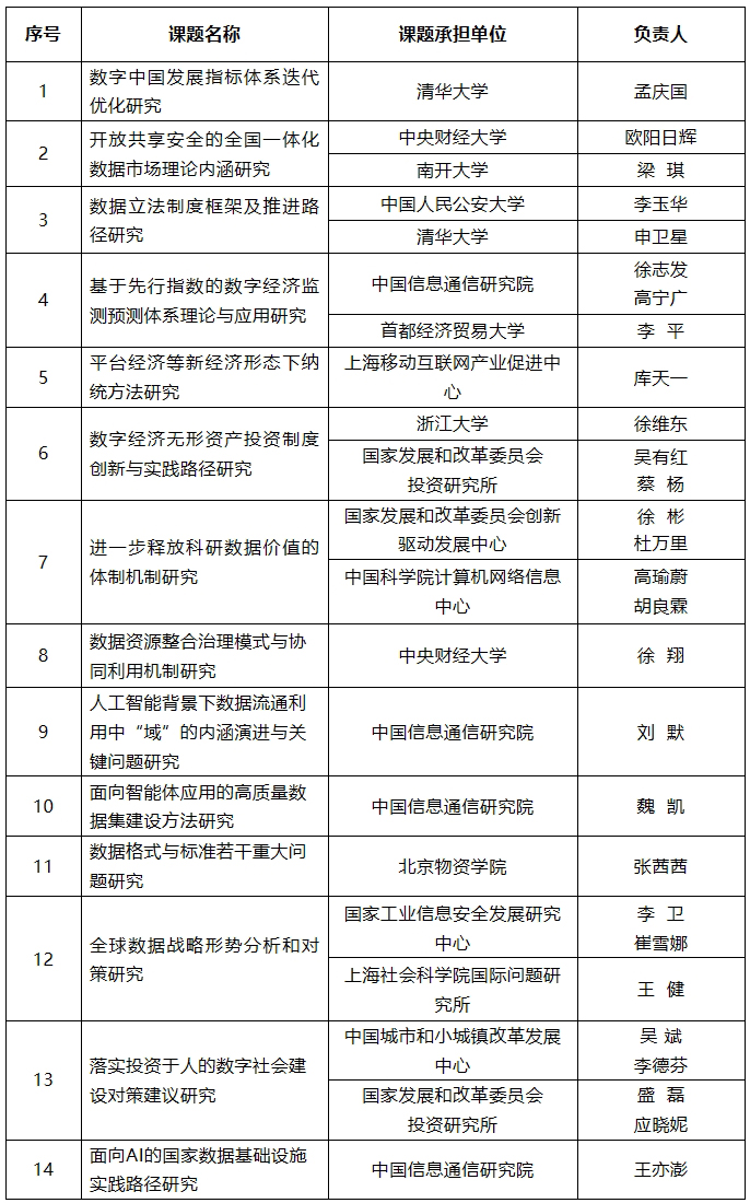 国家数据局2026年重大课题委托研究入选名单