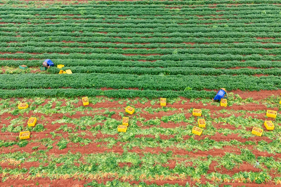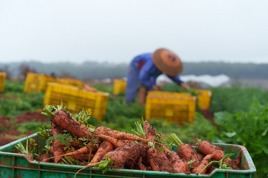 2月20日,永州市冷水滩区伊塘镇蔬菜种植基地,村民在采收胡萝卜。近年来,当地依托资源优势,大力发展玉米、胡萝卜、芥菜、藠头等特色农作物规模化、标准化种植,提高土地产出效益,促进农业增效、农民增收。雷中祥 蒋凌志 摄影报道
