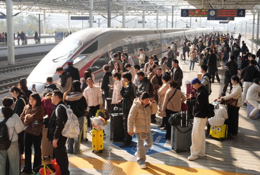 2月22日,衡阳东站,旅客有序排队乘车。当天是春节假期第八天,铁路迎来返程客流高峰。曹正平 谭贤 摄影报道(湖南图片库)
