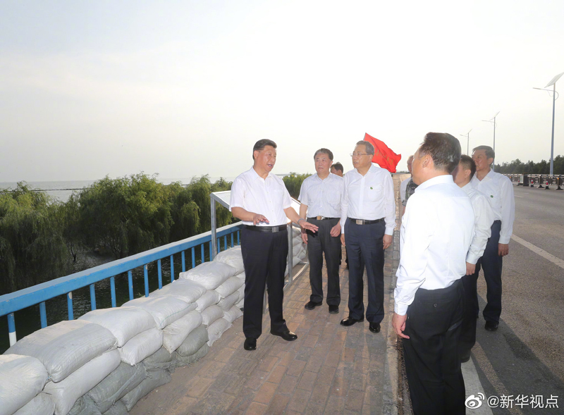 19日下午,正在安徽考察调研的习近平总书记来到合肥市肥东县十八联圩生态湿地蓄洪区巢湖大堤罗家疃段,察看巢湖水势水情。他强调,洪水退后,要防止蓄洪区内出现水退人进的现象。我们要实现人与自然和谐相处,就不能同自然争夺发展空间。八百里巢湖要用好,更要保护好、治理好,使之成为合肥这个城市最好的名片。(文字记者:张晓松 摄影记者:鞠鹏 王晔 燕雁)