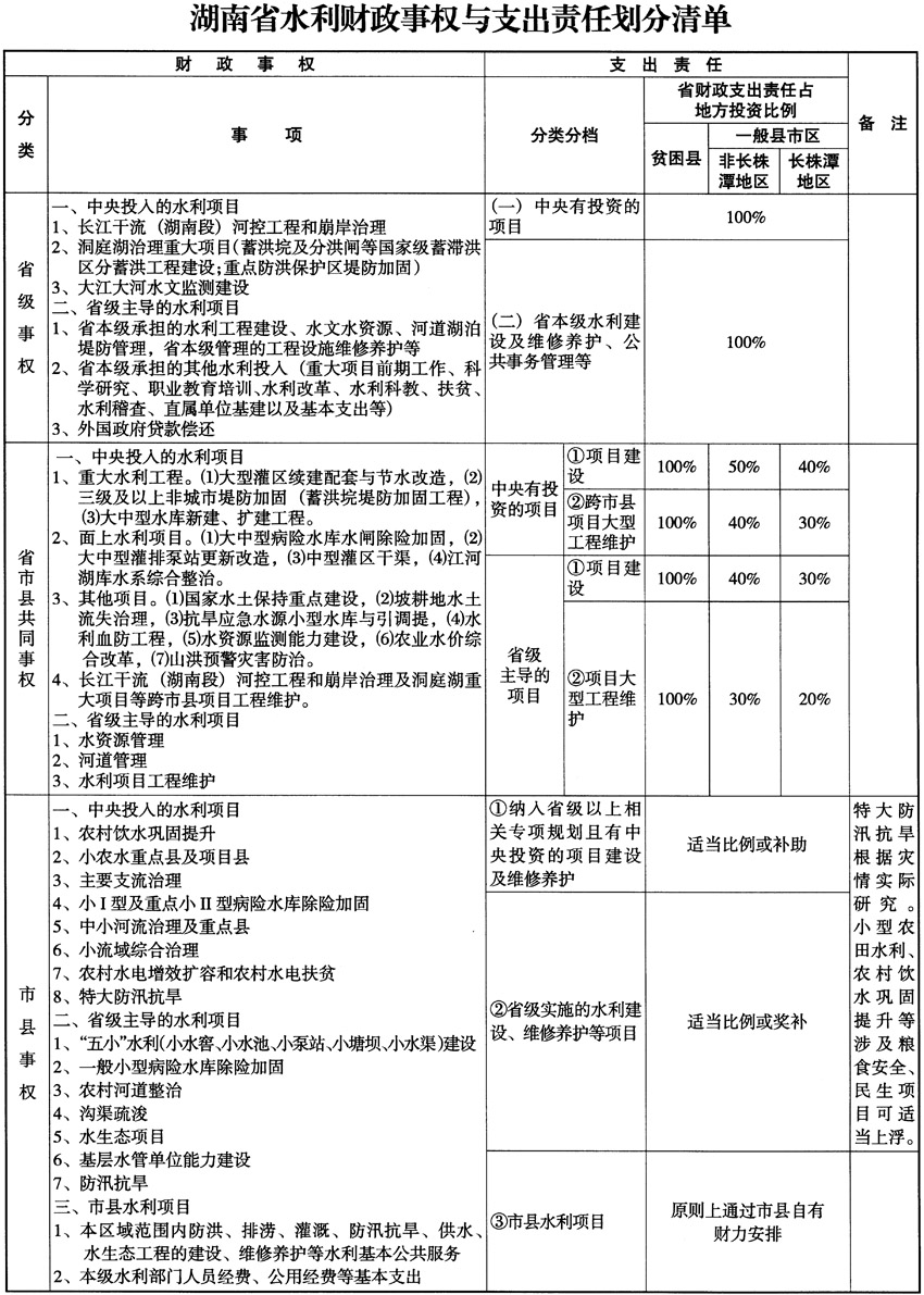 湖南省水利财政事权与支出责任划分办法(试行)