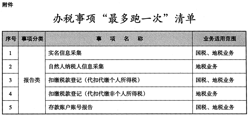 一、办税事项“最多跑一次”,是指纳税人办理《清单》范围内事项,在资料完整且符合法定受理条件的前提下,最多只需要到税务机关跑一次。纳税人办理涉税事项不符合法定受理条件,或者未按规定提交资料和未进行实名办税的,不适用“最多跑一次”。