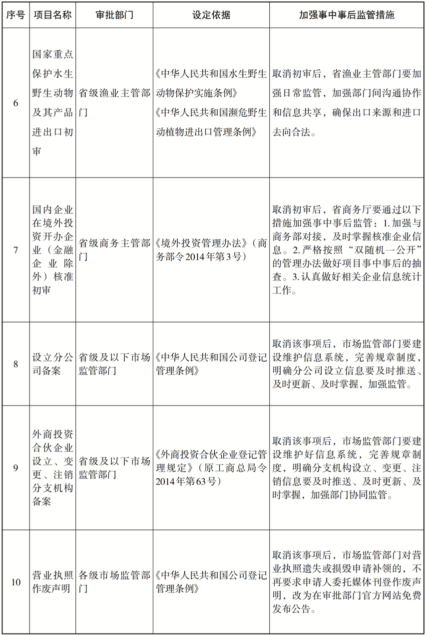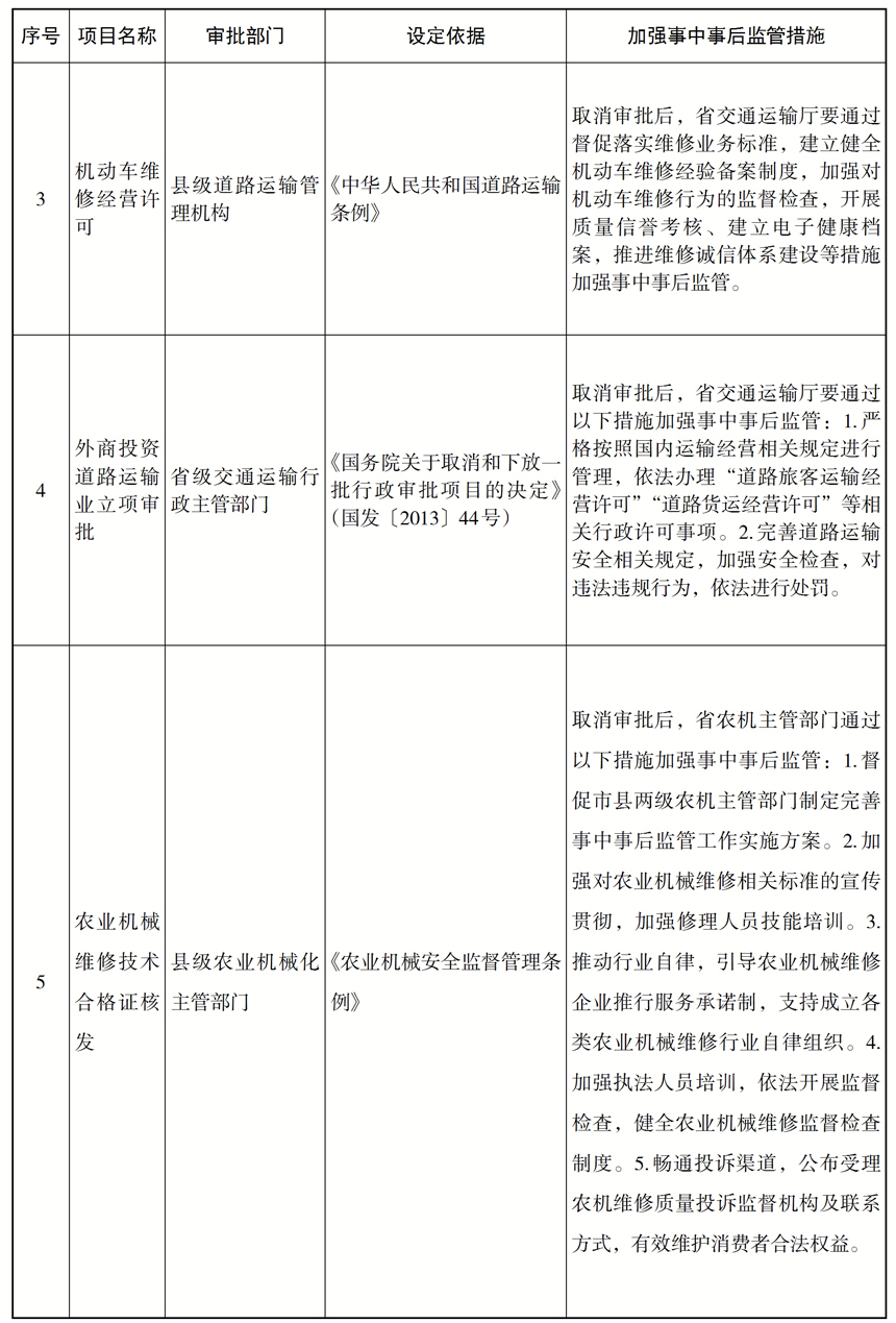 各地各部门要抓紧做好取消事项的衔接落实,制定完善事中事后监管细则,明确监管主体和具体措施,健全配套制度机制,并加强宣传解读、确保落实到位。各级人民政府要及时调整完善行政许可事项目录,大力推进审批服务便民化和“马上办、网上办、就近办、一次办”改革,方便企业和群众办事。