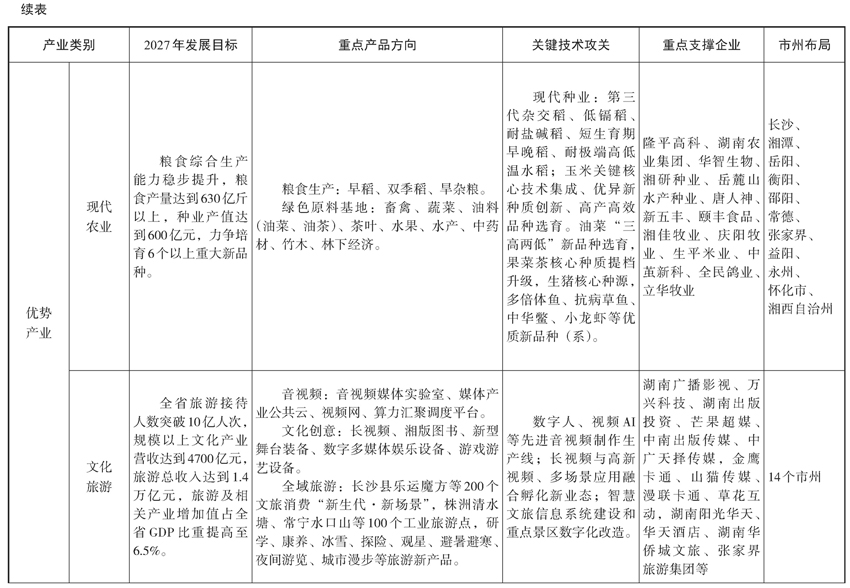 围绕工程机械、轨道交通、现代农业、文化旅游等优势产业,进一步发挥湖湘特色优势,推进延链补链强链,强化产业链上下游配套,打造彰显湖南特色优势的国内外一流产业集群。