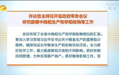 许达哲主持召开省政府常务会议 研究部署中晚稻生产和早稻收购等工作