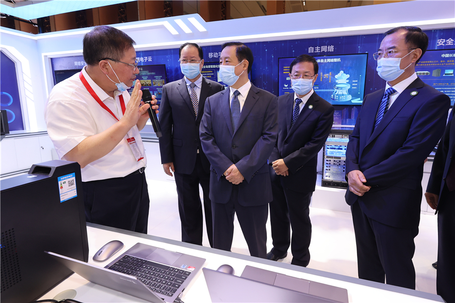 开幕式前,许达哲、毛伟明等与出席世界计算大会的嘉宾代表共同参观“计算创新与数字赋能”成果展。
