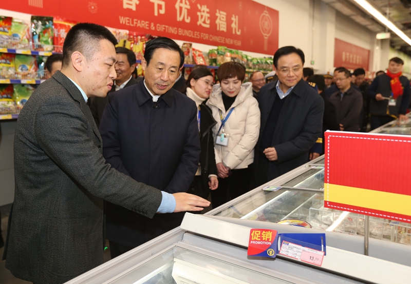 “很快就到春节,我们就是要把工作做得更实一些、更细一些,用自己的辛苦努力,让老百姓过一个安乐祥和的春节。”检查中,许达哲强调,要把保安全摆在优先位置。一方面要加强超市、商场等人员密集场所的监督管理和隐患排查,特别是强化消防设备、应急通道、安全标识标牌等安全设施的维护,完善相关应急预案,确保不发生安全事故;另一方面要确保食品质量安全,销售企业要加强源头把控,市场监管部门要强化监管、严格执法,加大检验、检疫、抽查力度,切实守住春节期间“舌尖上的安全”。要把保供应作为重要任务,充分考虑低温雨雪天气等因素影响,拓宽进货渠道,加强产销衔接,重点确保粮、油、副食品、肉禽、蔬果等生活必需品的市场投放量,保障好春节期间市场物资供应。要通过优质服务,积极扩大消费,抓住节日“黄金档期”扩销增效。