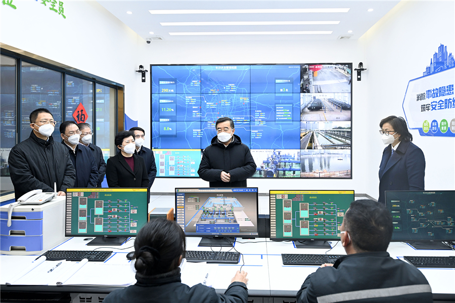 走进长沙供水有限公司银盆岭水厂,张庆伟仔细了解供水服务能力等情况,勉励值班值守人员坚守岗位,全力守护供水“生命线”。他指出,要牢记习近平总书记殷殷嘱托,全面提升供水服务保障能力,让群众喝上干净水放心水。要完善应急预案,加强调度运行监测,强化水质管理标准,全面提高应急保供能力。要时刻绷紧安全生产这根弦,全面压实安全生产责任制,积极防范化解风险隐患,确保全流程供水安全和春节期间管网运行安全。