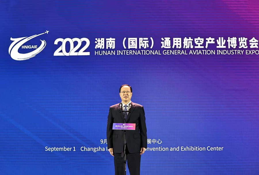 9月1日上午, 2022湖南(国际)通用航空产业博览会开幕,中国人民解放军空军副司令员董立出席,省委副书记、省长毛伟明宣布开幕。