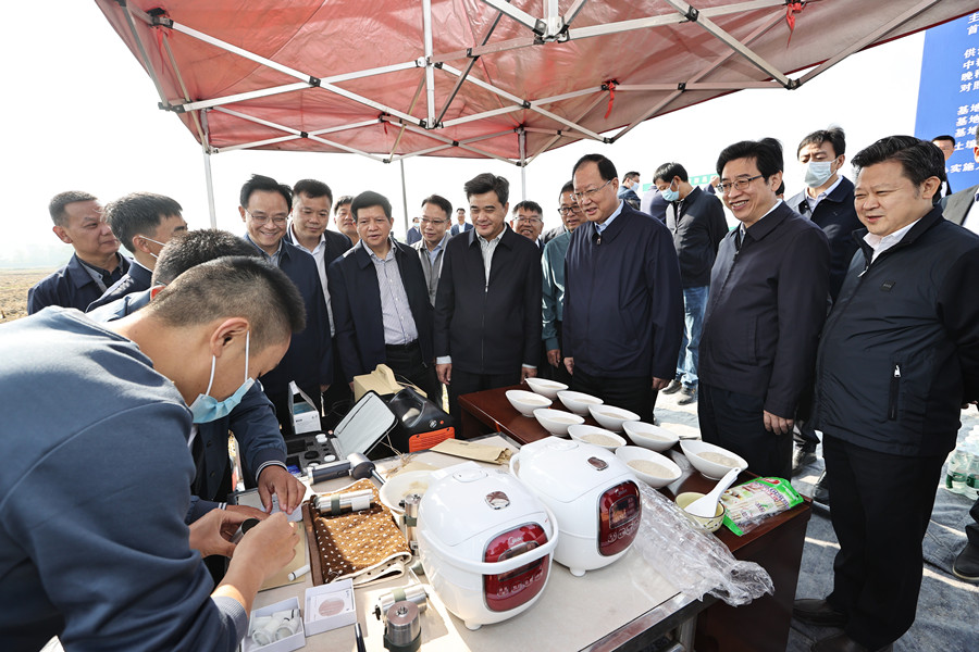 11月1日上午,省委副书记、省长毛伟明来到湘潭县低镉水稻试验示范基地考察调研。他强调,要深入贯彻党的二十大精神,扛稳扛牢粮食安全责任,在打赢种业“翻身仗”征程上接力奋战,为守护国家粮食安全贡献湖南力量、展现湖南担当。
