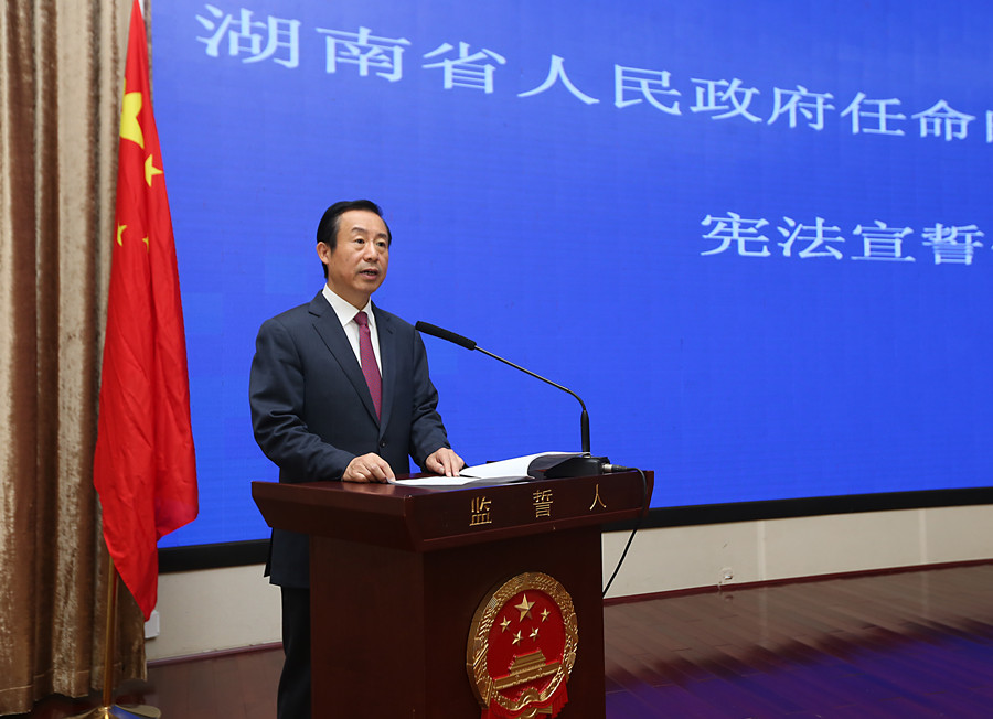 许达哲在讲话中说,举行宪法宣誓仪式,是贯彻落实习近平新时代中国特色社会主义思想,弘扬宪法精神、维护宪法权威,加快法治政府建设,激励政府公职人员依法履职、争做宪法的忠实崇尚者自觉遵守者坚定捍卫者的庄严活动。各级政府领导干部和国家工作人员要始终忠于党,做政治上的明白人。增强“四个意识”,坚定“四个自信”,自觉做到“两个维护”,严守政治纪律和政治规矩,党中央提倡的坚决响应、党中央决定的坚决执行、党中央禁止的坚决不做,把廉洁自律要求落实到各项工作当中,做勤政廉洁的好公仆。要始终忠于宪法,依法履职尽责。国家公职人员尤其是领导干部要加强宪法学习,增强宪法意识,带头尊崇宪法、学习宪法、遵守宪法、维护宪法、运用宪法,把依法行政要求贯穿于政府工作全过程,自觉接受宪法、法律、群众和社会监督,提高运用法治思维和法治方式解决问题的能力,推动形成办事依法、遇事找法、解决问题用法、化解矛盾靠法的法治良序。要始终忠于事业,勇于担当实干。坚持实字当头、干字为要,把“五个过硬”要求贯穿于公务员队伍建设始终,弘扬求真务实、真抓实干作风,把主要精力聚焦到推动高质量发展、打好三大攻坚战、实施创新引领开放崛起战略、建设富饶美丽幸福新湖南上来,做到面对矛盾敢于负责、敢抓敢管,推进工作实打实、硬碰硬,解决问题雷厉风行、见底见效。要始终忠于人民,增进民生福祉。坚持以人民为中心的发展思想,强化服务意识,倾听群众意见,着力解决好群众关心关注的教育、医疗、社保、住房、饮水安全、环境治理等问题,不断提高群众的基本公共服务满意度,切实增强人民的获得感、幸福感、安全感。