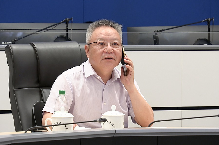 沈晓明与参加封堵合龙的抢险队伍通话表示感谢。