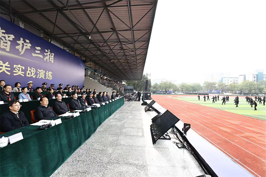 本次全省公安机关实战演练科目包括“1+2+3+4”,即:“十四五”公安建设成果一项汇报,新质战斗力装备展、公安部智慧公安软件研发中心(长沙)成果展两大展示,守护一江碧水、大型文旅安保、智慧交管三个视频连线科目,枪械使用战术、徒手攻防技术、防暴处突、事件处置四个现场演练科目。