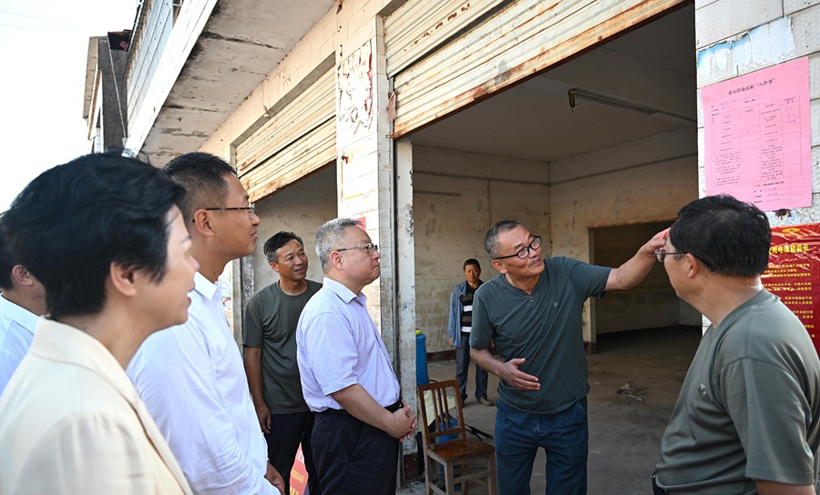 8月5日,沈晓明在团洲乡团华村一组农户家中实地察看灾情,了解危房鉴定、卫生消杀、电力抢修等工作开展情况。
