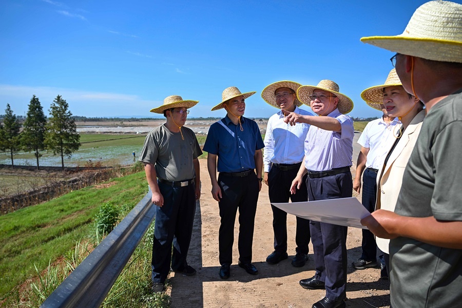 团洲垸决口以南的团洲乡主渠公路被洪水严重冲毁,经抢修已实现通行。沈晓明来到公路损毁处,了解灾区道路修整工作进展,指出要加快重要基础设施抢修进度,强化隐患排查,确保工程质量。在团洲乡一水厂,沈晓明仔细询问灾后群众生活用水供给情况,要求加快推进损毁供水设施修复,加强水质检验检测,确保群众生产生活用水安全。