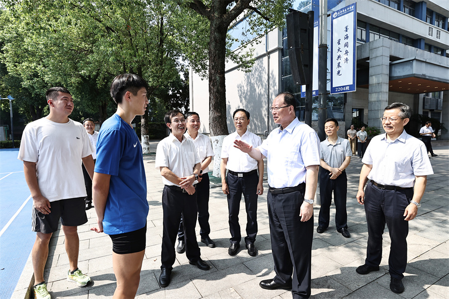 8日,毛伟明一行首先来到湖南大学,走进电能高效高质转化全国重点实验室、机器人视觉感知与控制技术国家工程研究中心,看望慰问中国工程院院士罗安、王耀南,详细询问科研攻关、人才培养、成果转化等情况。毛伟明勉励他们坚持教育科技人才一体推进,厚植家国情怀、潜心教书育人、勇攀科技高峰,充分发挥好高能级科创平台作用,取得更多原创性科研成果、培养更多创新型人才,为实现国家高水平科技自立自强再立新功。