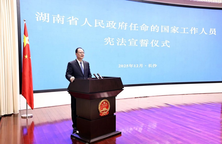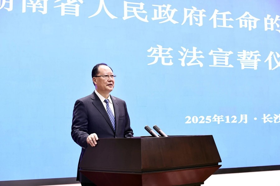 宣誓后,毛伟明指出,宪法宣誓既是一项法定仪式,更是一项庄严承诺。大家要珍惜职责、不负重托,更好依法履职、担当作为。要坚持绝对忠诚本色。始终旗帜鲜明讲政治,始终在思想上、政治上、行动上同以习近平同志为核心的党中央保持高度一致,确保党中央决策部署在湖南落地生根、开花结果。要坚持依法行政原则。把依法行政贯穿于决策、执行、监督和服务全过程各方面,持续提高运用法治思维和法治方式深化改革、推动发展、化解矛盾、维护稳定、应对风险的能力,让法治成为政府工作的鲜明底色。要坚持为民服务初心。用心用情办好每一件民生实事,千方百计解决好群众急难愁盼,实现好、维护好、发展好最广大人民的根本利益,让民生福祉更加可感、可及。要坚持清廉从政底线。始终把深入贯彻中央八项规定精神学习教育常态化、长效化,持之以恒改作风、树新风,时时自警、自省、自律,处处慎权、慎独、慎微,做到一心为公、一身正气、一生为民。