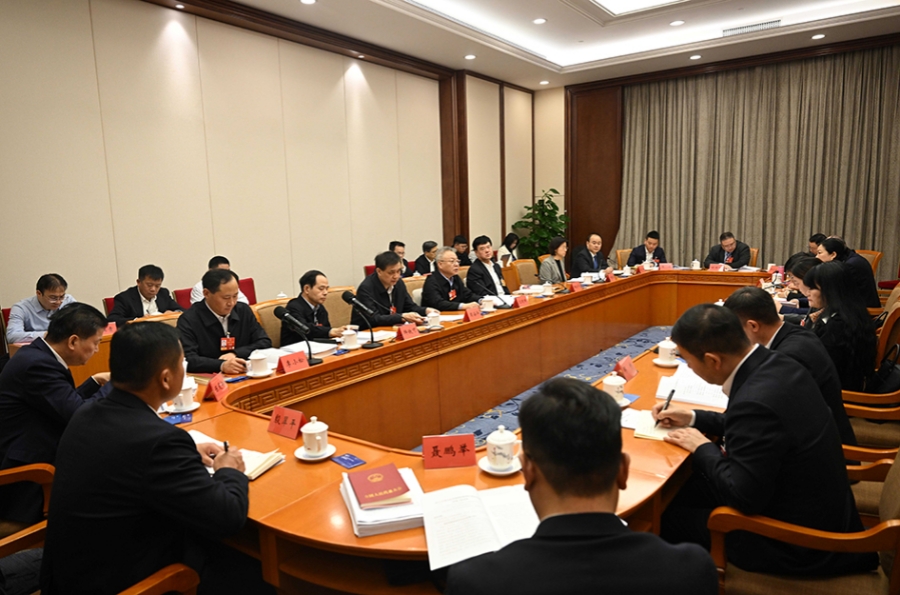 3月8日,湖南代表团在驻地举行分组会议,审议生态环境法典草案、民族团结进步促进法草案、国家发展规划法草案。代表团团长沈晓明、副团长毛伟明等参加。