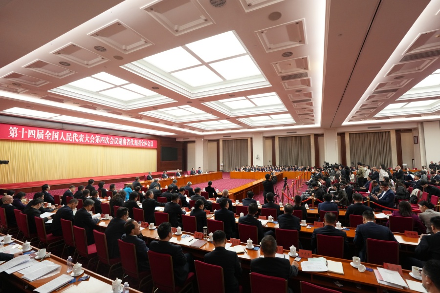 3月7日上午,出席十四届全国人大四次会议的湖南代表团举行第四次全体会议并向中外媒体开放。