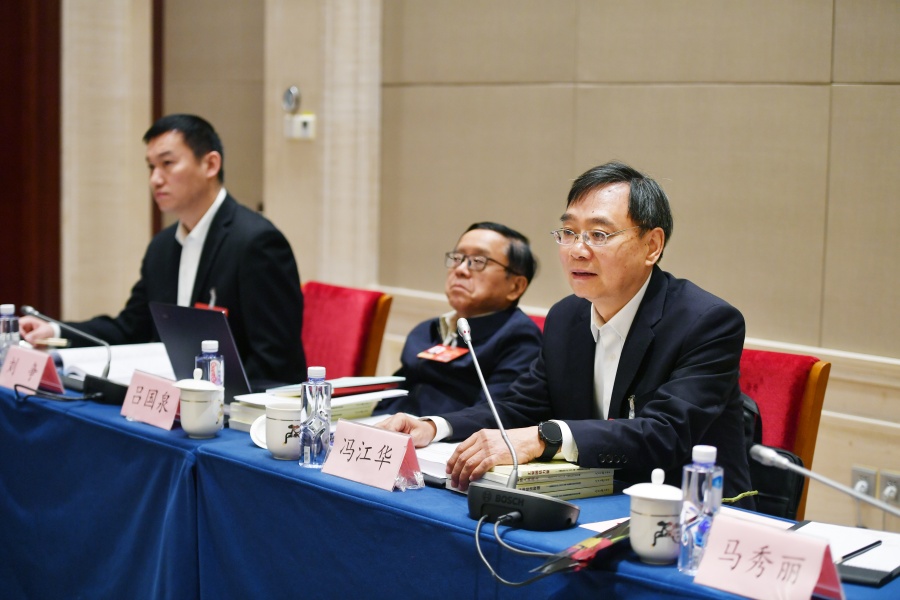 3月8日,住湘全国政协委员冯江华在小组会议上发言。