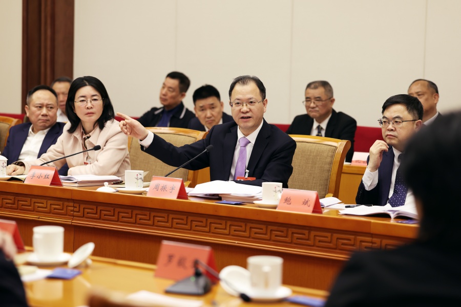 3月6日下午,周振宇代表在湖南代表团分组会议上发言。