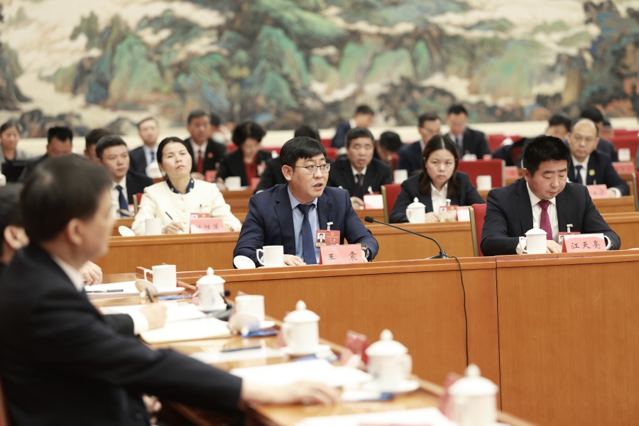 3月11日上午,王震代表在湖南代表团全体会议上发言。