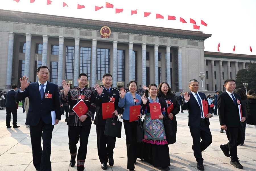 3月12日下午,十四届全国人大四次会议闭幕会后,湖南代表团代表走出会场。本文照片为湖南日报全媒体记者 刘尚文 唐俊 傅聪 易昂 田超 摄