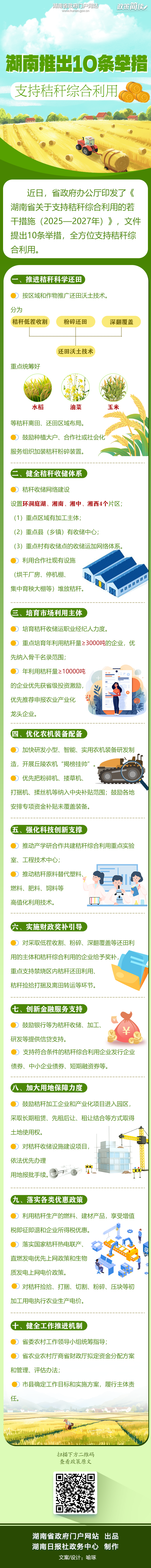湖南省人民政府办公厅印发《湖南省关于支持秸秆综合利用的若干措施(2025—2027年)》的通知