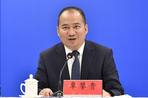 湖南省委宣传部新闻发布处处长覃攀贵主持新闻发布会