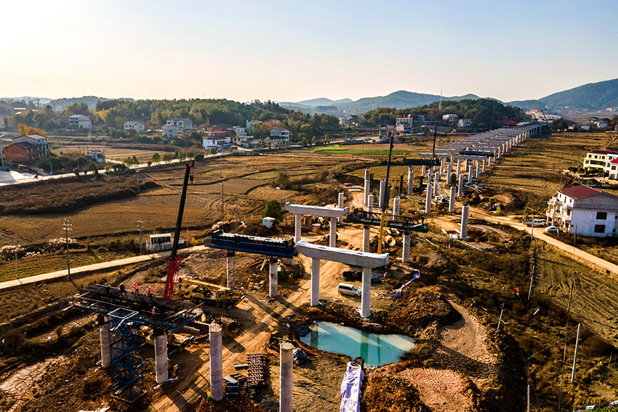 12月21日,醴(陵)娄(底)高速公路双峰县杏子铺镇石壁村段,工人在施工。醴娄高速是上海至昆明国家高速公路醴陵至娄底段的扩容项目,全长154.271公里,路基宽34米,主线采用双向六车道高速公路标准建设,设计时速为120公里,总概算250.43亿元,计划2024年底建成通车。 李建新 李尧池 摄影报道