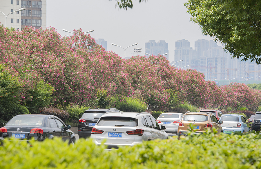 6月2日,长沙市芙蓉区红旗路的夹竹桃花开正艳。时下,长沙市颇具观赏性的夹竹桃已迎来盛花期,成为一道亮丽的风景。 湖南日报全媒体记者 李健 摄