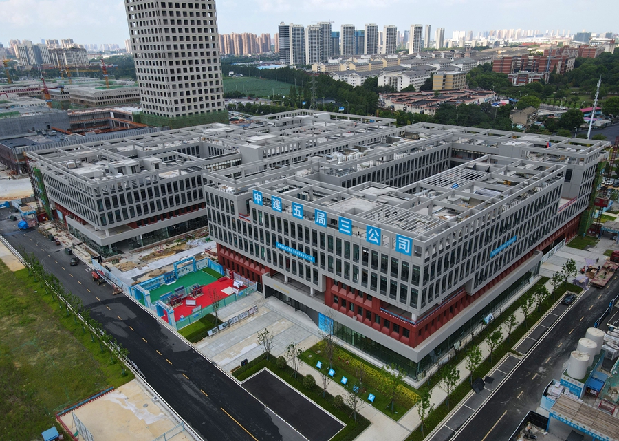 8月23日,岳麓山实验室集聚区农科院片区,工人在进行外饰施工。目前,该项目主体结构已全部封顶,各项装饰及机电安装工程顺利推进,预计年底可交付使用。 湖南日报全媒体记者 赵持 摄
