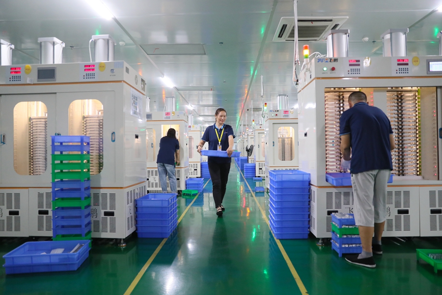 9月6日,新田县产业开发园区湖南省飞鹏电子科技有限公司,工人在赶制新能源订单产品。近年,该县把产业开发园区企业进城务工人员子女安置在芙蓉学校就读,助企纾困稳定用工,促进企业发展。